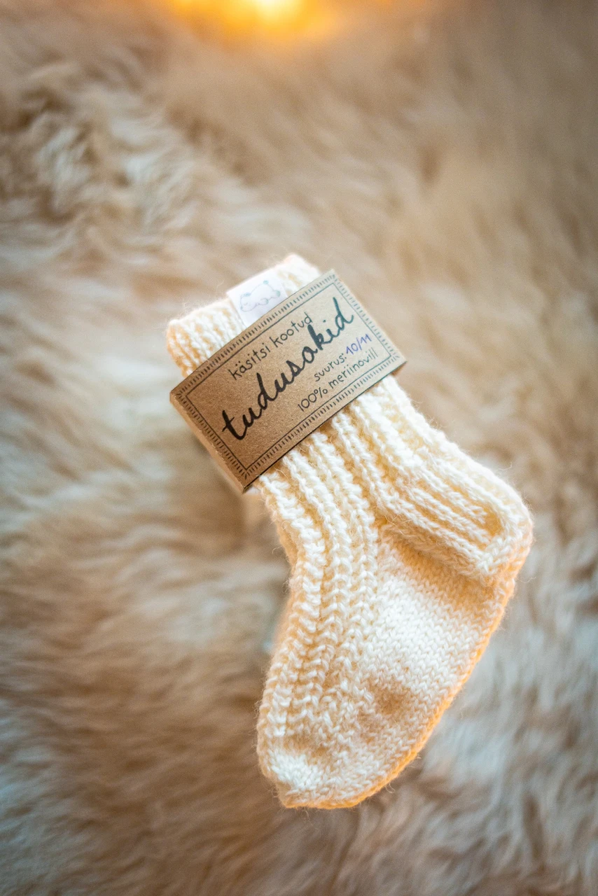 Suure hoole ja armastusega käsitsi kootud meriinovillased sokid Viljandist pärit vanaema Anne poolt, mis on spetsiaalselt just sinu lapse jaoks loodud!