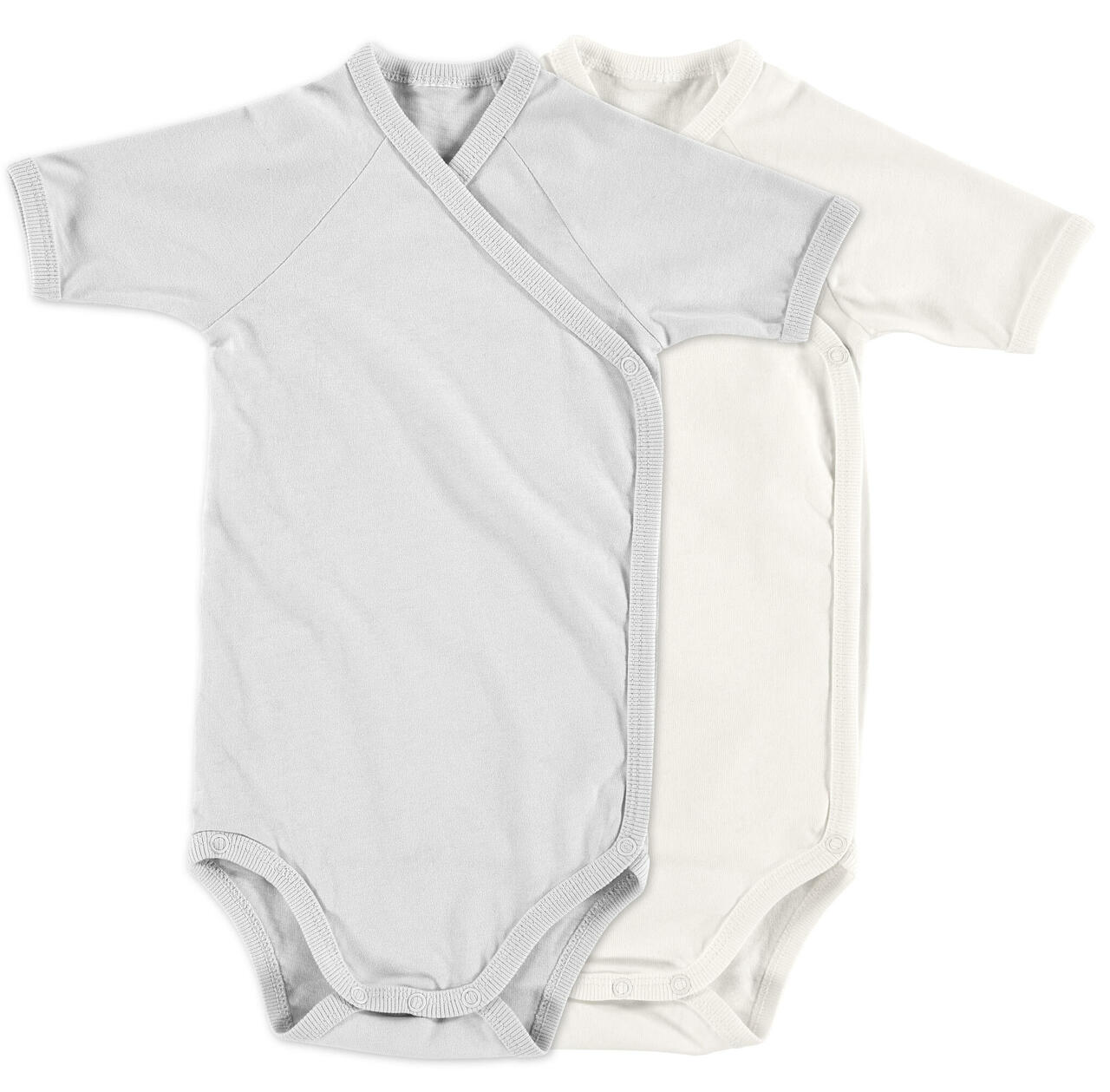 - Komplektis on kaks lühikeste varrukatega bodi - sinakashall ja puhas valge