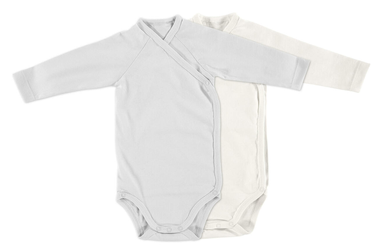 - Komplektis on kaks pikkade varrukatega bodi - sinakashall ja puhas valge